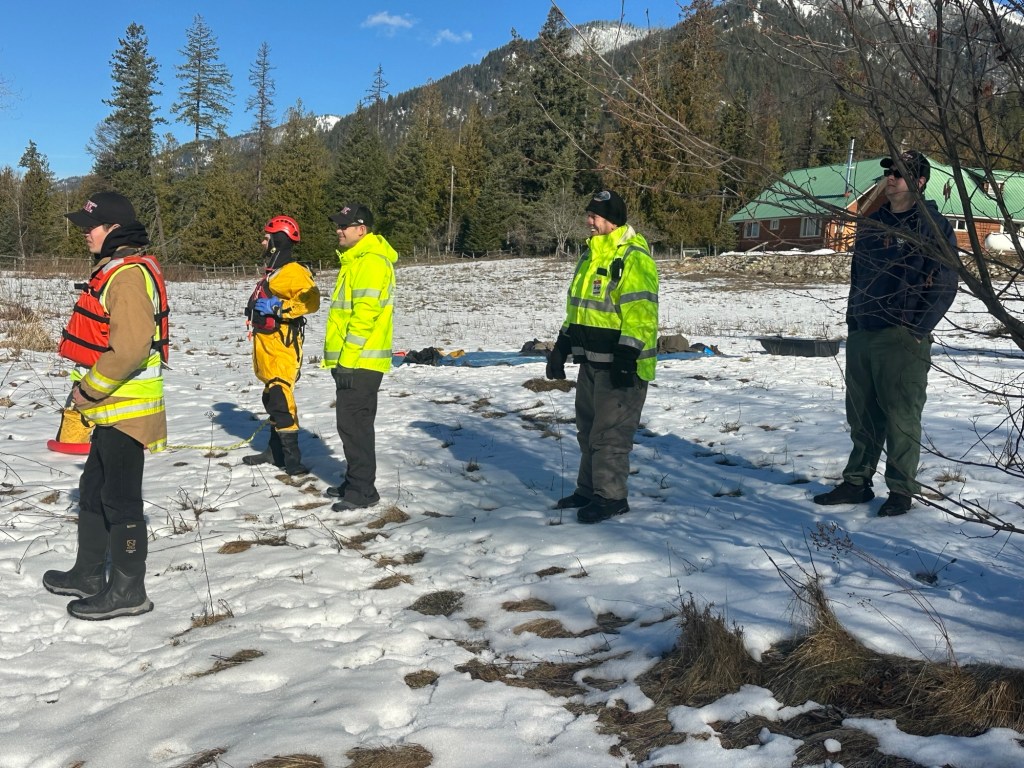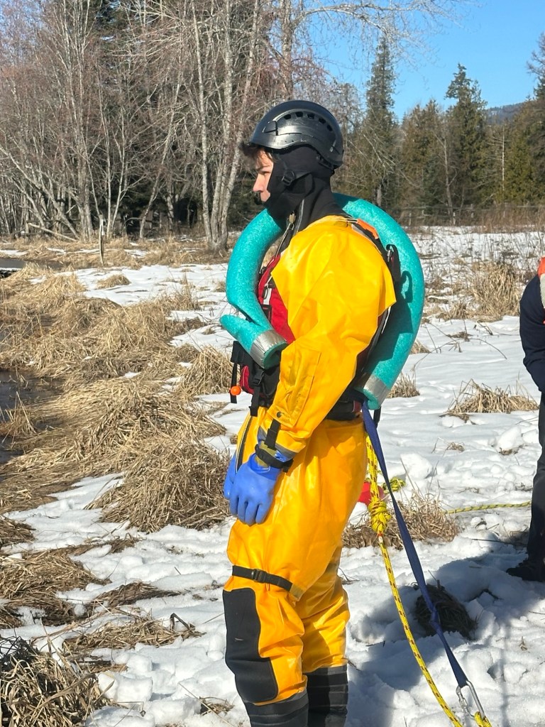 One of our volunteers, Fred helping reload hay for a stranded motorist who lost about 50 bails on the highway. Luckily only a few bales broke and we help clear the roadway. Beautiful training evening on Lake Pend Oreille Drive safe!!Just some of the gear needed for a callDropping and spraying Sunset Fire, holding a fire lineIce Rescue Training